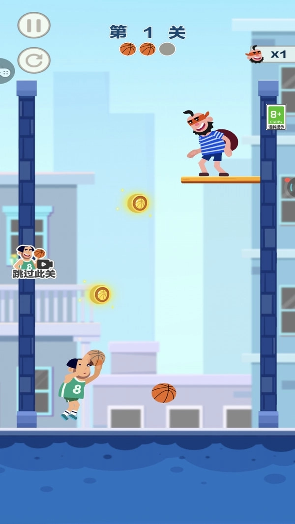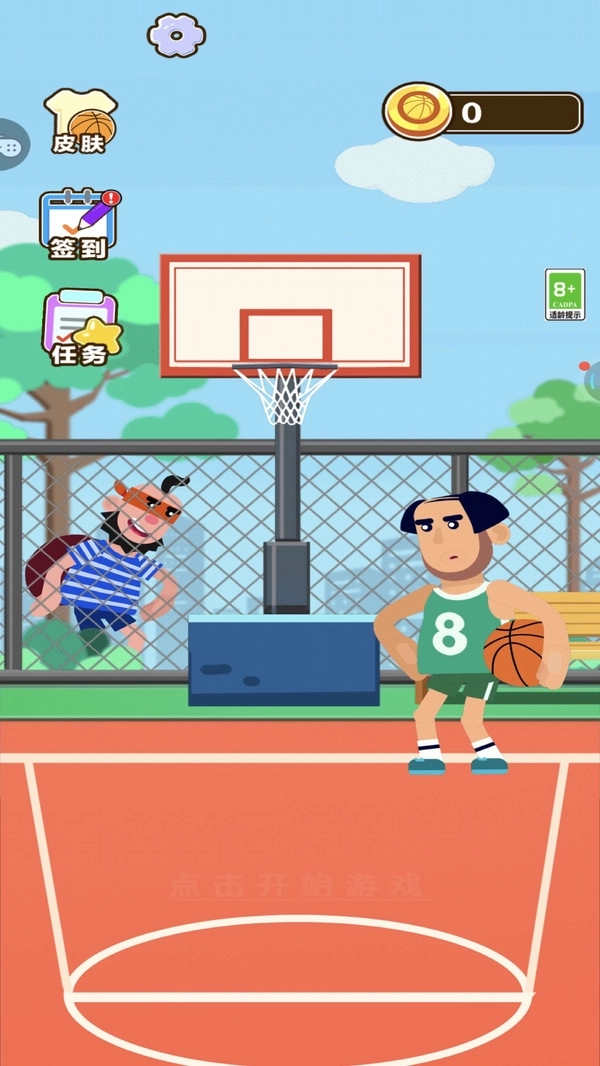 1.点击屏幕能让角色完成投篮动作,滑动屏幕则可控制角色进行移动与躲避操作。