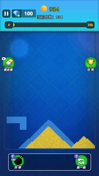 1.突破了传统俄罗斯方块的固定规则,把“方块实体”转变为动态的“粉末粒子”。