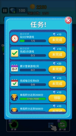 3.每一关都设置了独特的目标,部分关卡还会加入特殊元素,比如“冰冻粉末”需要通过连击来解冻,这十分考验玩家的即时应变能力。