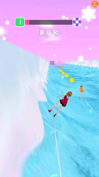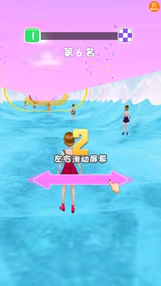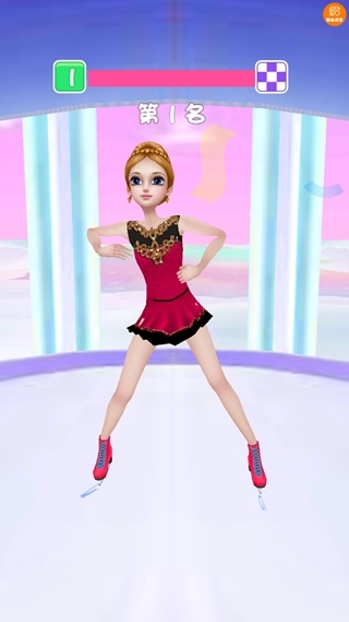 1、进入关卡1,选择已解锁的角色(比如红裙造型),点击开始游戏,即可进入滑冰赛道。