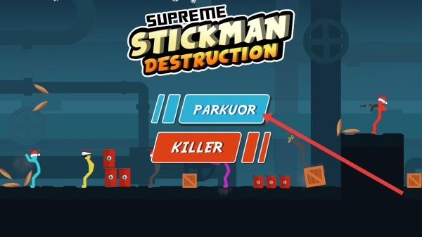 1、点击【PARKUOR】按钮,选择跑酷模式,进入《Supreme-Stickman-Destruction》游戏,开启火柴人跑酷挑战。
