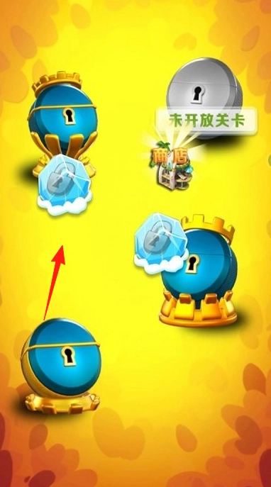 3、宝箱奖励方面,完成特定条件后可解锁蓝色宝箱(带有冰锁),从中获取道具与金币;尚未开放的关卡需在后续逐步解锁。