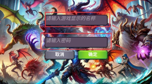 在上方的输入框填写游戏名称,下方的输入框输入密码,完成后点击那个绿色的确定按钮。