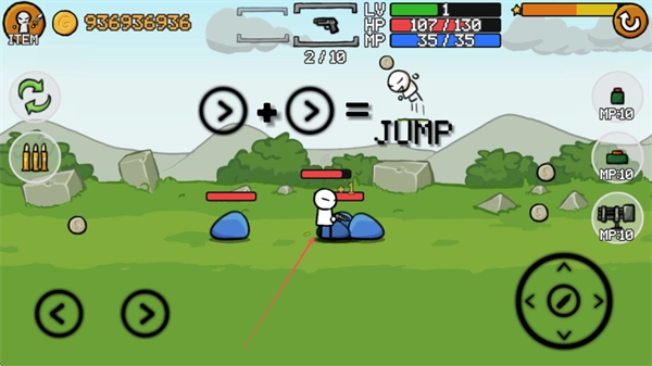 你需要操控火柴人进行移动,双击右方向键就能让它跳跃;同时要攻击蓝色的敌人,还要收集场景中的道具和金币。