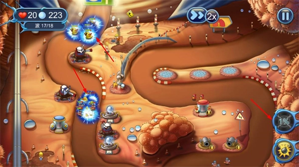 当敌人一波接一波袭来时,借助防御塔的爆炸、电攻等攻击效果,可以对敌人造成高额伤害。