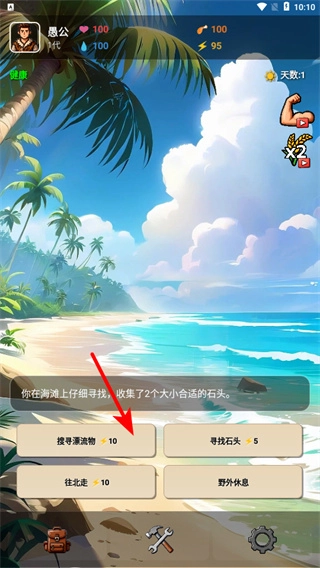 在游戏中,选择寻找石头等资源收集选项,资源收集是生存发展的关键操作,收集后可积累石头基础材料,用于建筑。