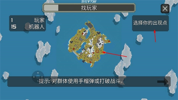 在进入游戏之前挑选好出现的地点,随后在地图里和其他玩家以及机器人进行对战。