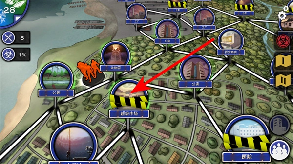 在地图界面,挑选能够探索的地点(比如超级市场),点击进入。