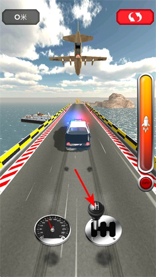 赛车的行驶速度得及时调整并加快,只有达到足够快的速度,才能追上飞机并完成跳跃动作,所以速度的把控是闯关成功的关键因素之一。