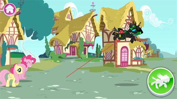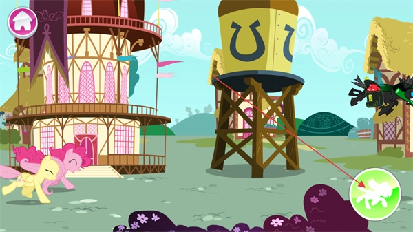操控小马在小镇里奔跑,躲避黑色反派的追捕,借助地形来周旋。