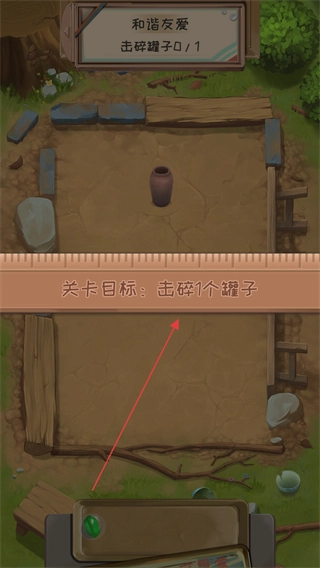 明确关卡目标为击碎1个罐子,观察罐子位置。