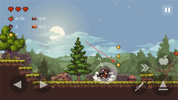 不断探索关卡,收集苹果、金币之类的资源,战胜所有敌人,达成关卡目标,提升角色等级与战斗力。