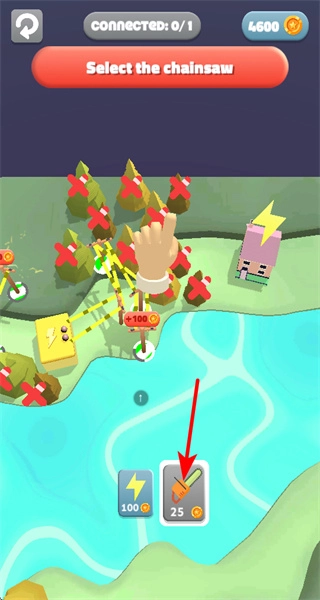 当遇到阻碍时,点击选择电锯道具,借助它的功能可以清除线路上的障碍,从而为电力连接创造有利条件。