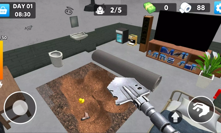 2、玩家要在监狱中不断地挖掘,能挖掘到各种物品。