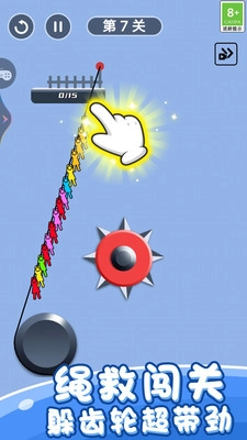 3、长按屏幕能够临时固定绳索节点,快速滑动则可产生弹性牵引效果。