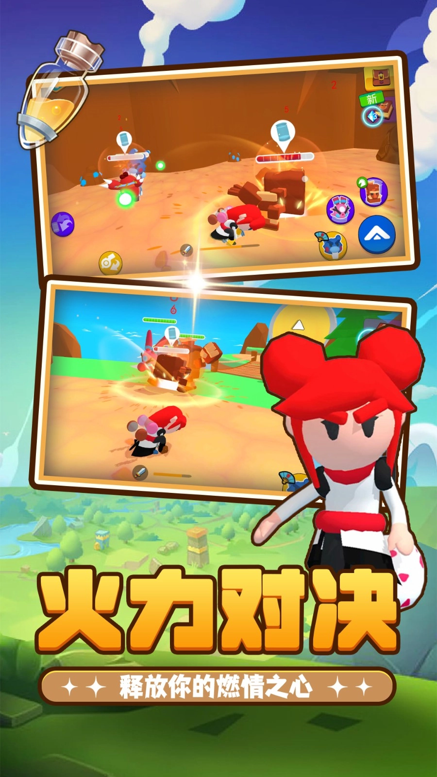 3、在不同关卡里体验变幻莫测的战斗局势,开启一场场畅快的乱斗对决。