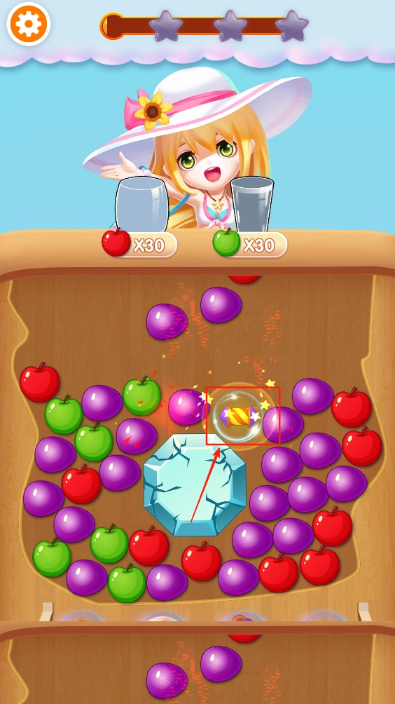 2、点击颜色相同的苹果来消除它们,以此制作出对应颜色的果汁。