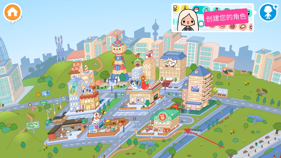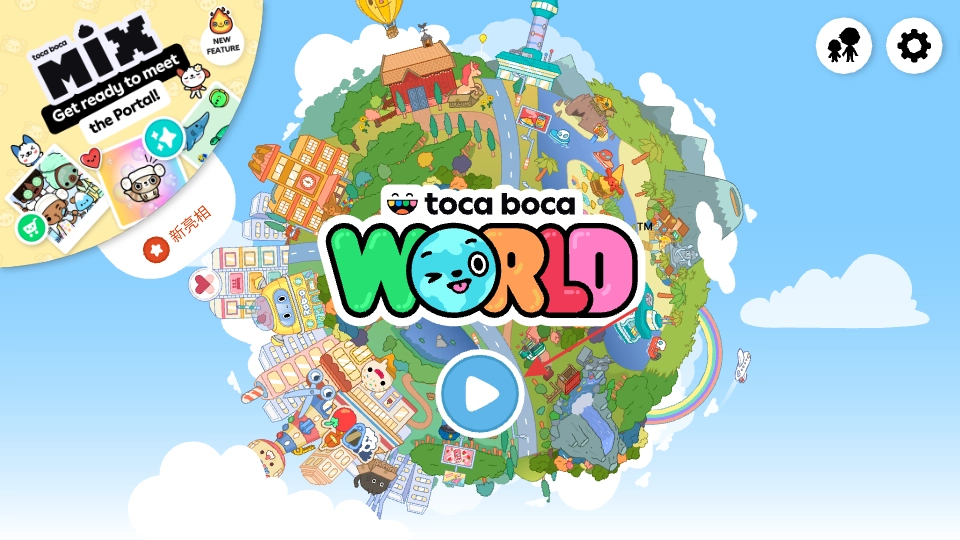 在游戏标题页找到蓝色的播放按钮并点击,即可进入《托卡生活童真世界》。