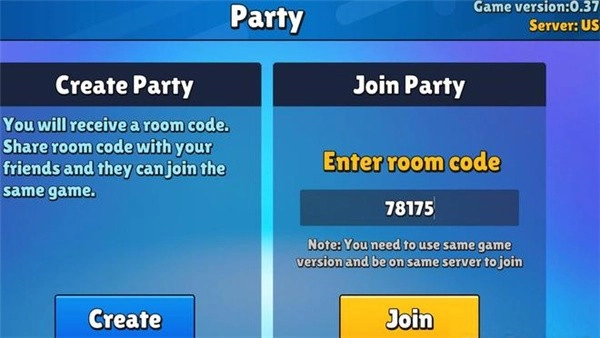 4、点击右侧的PARTY选项进入多人模式,在这里你既可以创建新房间,也能通过输入好友提供的房间代码加入对方的房间。