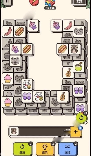 1、进入游戏后,点击相同图案的方块进行消除,待所有方块都被清除完毕,即可赢得胜利。