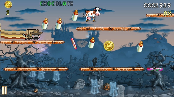 控制彩虹猫在各种平台上跳跃,避免障碍收集奖励。