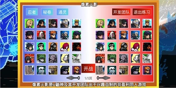 4、接着进入火影角色选择界面,玩家可在此挑选自己想要体验的角色,选好后点击开始即可。
