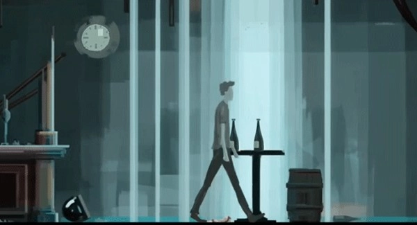 回忆永远是痛苦的,再次醒来后的男主愈加的痛苦。所以卧室变得更加的破烂不堪。点击时钟,这次依旧是回忆,但从回忆看得出这时候的感情开始慢慢的破裂。回到现实,穿好衣服,还是要喝杯咖啡提神,静坐一会,下楼。