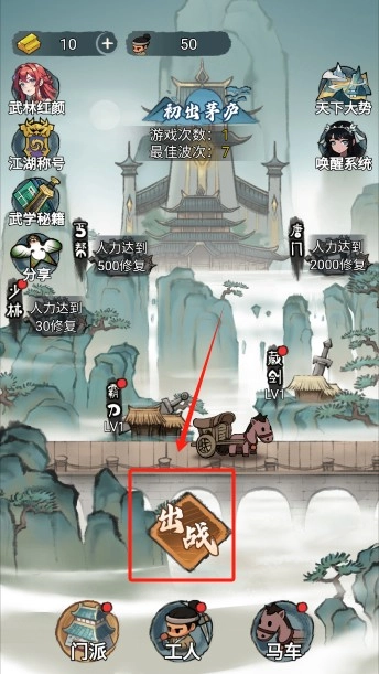 进入游戏主界面后,点击出站。