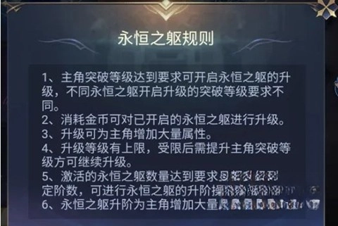 当你激活的身躯数量和等级达到一定条件时,就能对角色的永恒之躯进行升级。升级将直接带来强力属性的提升,让你的角色如虎添翼。