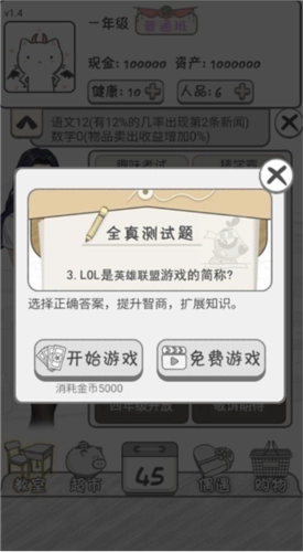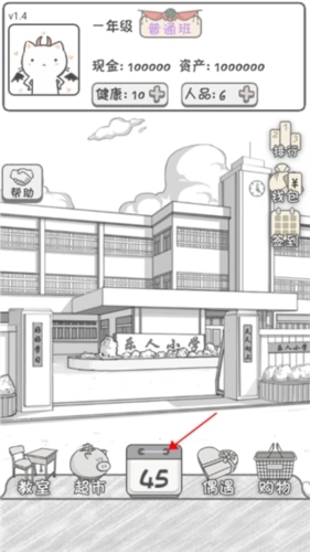 5、玩家持续通过答题来学习,只要语文、数学、英语这三门课程的得分都达到60分以上,同时把日历上的天数点到0,就能完成升级啦。这就好比现实里学期结束,而且期末考试都及格了,是不是挺有意思的呀!
