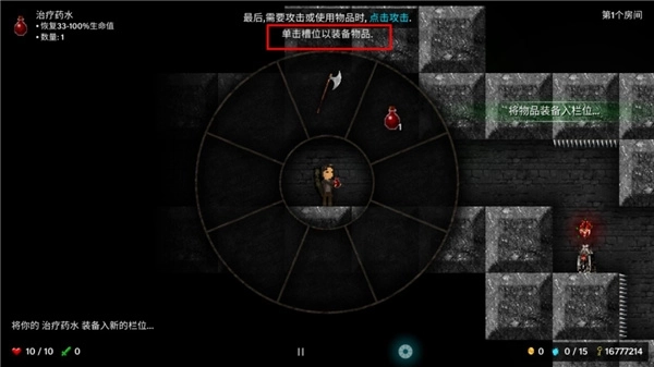 6、选择第一个选项后,角色手中的物品会产生变化,武器会转变为药水,若再次点击就能切换回原来的状态。