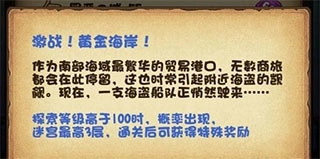 激战!黄金海岸!:当探索等级超过100级时会有概率触发,该迷宫最多包含3层,完成通关即可获取特殊奖励。