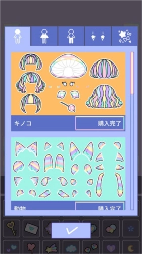 4、粉彩女孩可以打造出各种充满欢乐的动画形象,你可以收集自己喜爱的各类物品道具来完成设计。
