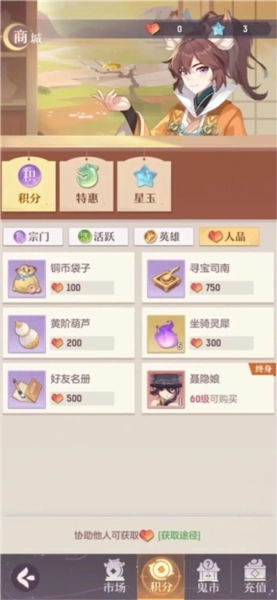 其次是灵师与角色的培养环节。灵师方面,装备和灵石镶嵌要尽量提升到满配状态,也就是红色装备搭配2级宝石,这部分用铜币就能完成。而人物角色则需要打造全套红色装备,再配上3级宝石,这一步会消耗一些元宝。不过做完日常任务获得的元宝是足够的,而且绑玉还能在坊市购买礼包,从中获取大量元宝和铜币。