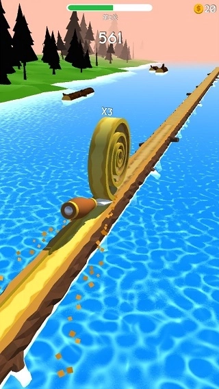 3、不同背景会带来不同难度的挑战,你将化身画面里凿木头的木匠,拿起工具在场景中沿着又窄又长的木头精准前进,还得找准合适的位置与时机果断削木;同时,挑战中的玩家要时刻留意锯子的存在,游戏里还有不少有趣的障碍物和特色内容。