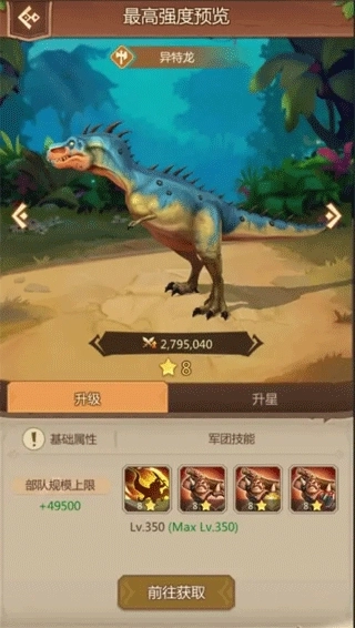 5、士兵的核心玩法聚焦于野外场景,能够开展资源采集、恐龙攻击、野蛮人部落袭扰等活动,只有把每种士兵的价值都充分发挥出来,发展速度才会快于他人。举例来说,若要采集资源,不妨多携带巨兽,因为它的资源承载量是最高的。