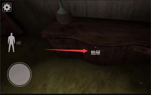 人物睁开眼睛后,先去正前方的抽屉里寻找线索,接着从屏幕右侧的楼梯向上行进。