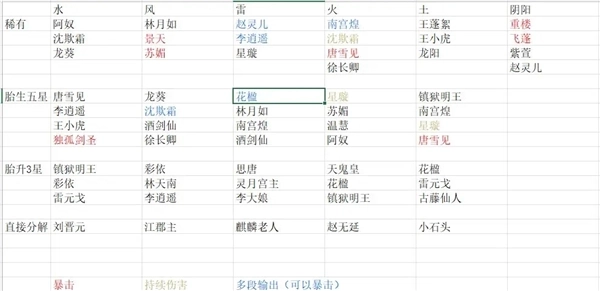 下面这张图是当前对侠客的统计情况,其中仅标注了输出类型的侠客,辅助类和肉盾类的侠客暂时还未进行标注,这部分内容会在后续的文字中再做说明。