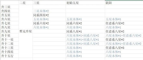 侠客的培养离不开升星,而升星自然需要对应的材料,下面为大家说明具体的材料要求。