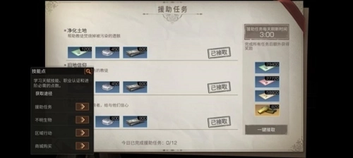 在不同的地图里,找到发布援助任务的NPC,完成该地图的3个任务后,就能得到技能点作为奖励,不过总的任务完成数量是有上限的。