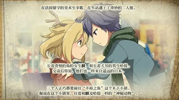 丰裕之角的剧情基调偏向日常欢乐,不过其中也暗藏了不少伏笔。游戏里的分支选项会导向不一样的主线剧情与结局。它的主线有两条,一条是恋爱线,另一条是哈提的暗夜狼线,不同主线在序章结束后对应的预告PV也存在差异。