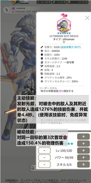 主动技能:当满足自动发动的技能条件时会自动触发,该技能无范围限制,能对处于浮空状态或行动不可状态的敌人造成660%的技能伤害,并使其陷入僵直状态。