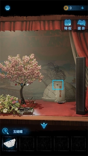 2、使用灭火器扑灭戏台上的火焰,之后点击起火的位置拉近镜头,再点击白色蝴蝶,获取【玉蝴蝶】。