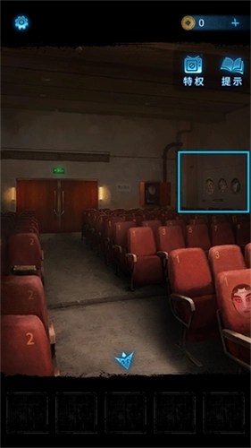 1、点击右侧带有脸谱图案的座位,获取脸谱的排列信息后,依据该信息打开右后方的消防格,即可获得【灭火器】。