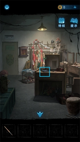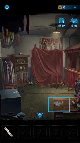 9、从墓碑通道进入房间后,点击桌上的书籍,可获取后续线索以及“开锣大吉”的【封条】。接着,把化妆笔在桌上的颜料盒里蘸上颜料。