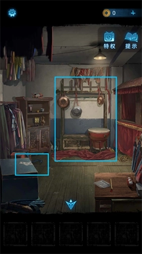 12、把获取到的封条粘贴在左侧的箱子上,接着点击里屋正前方的大红布,掀开红布后能看到乐器架。依据纸张上带有红色图案的乐器排列顺序,依次敲击对应的乐器,打开箱子后获得【布娃娃】。