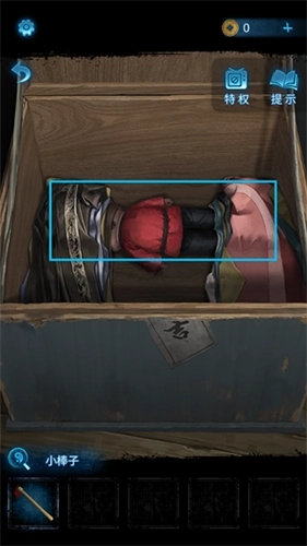 11、走进里屋,从箱子上取到【小棒子】,同时留意纸张上的红色图案信息。