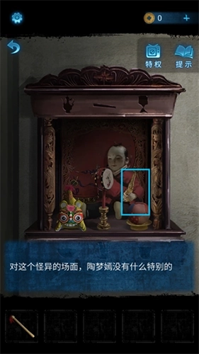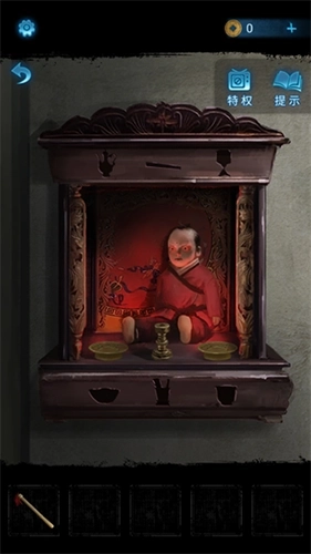 13、回到前屋,把布娃娃放置在神龛里。向布娃娃行礼祭拜后,神龛上会显现出带有图案的线索。