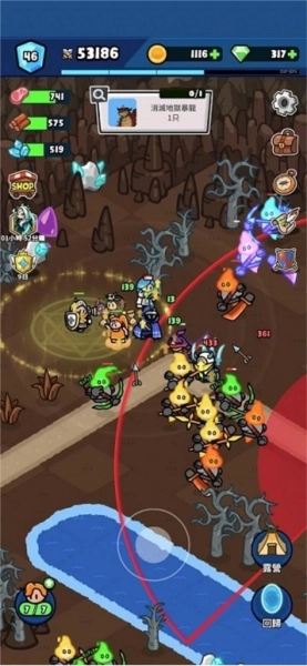 1、操作:这是一款操作简单的竖屏游戏,仅需一根手指就能控制移动;游戏角色会自动攻击、自动释放技能,我们只需操控走位就行,操作十分简便。