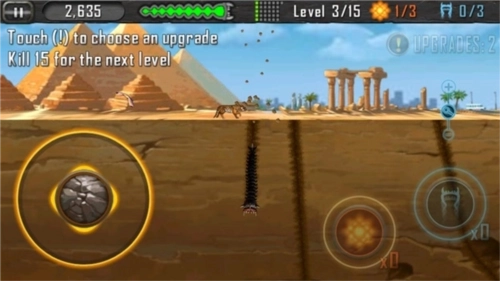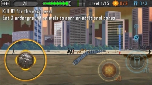 死亡蠕虫这款游戏包含45个关卡,并且设置了多种不同的场景。在DeathWorm™里,每个场景都会划分成若干轮,每一轮的具体要求会显示在屏幕的左角,这些要求通常是类似“消灭10个人即可升级”或者“在30秒内击杀5人”这样的简短提示……